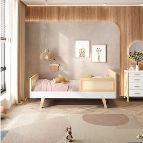 Utilizamos também o Rattan na Cabeceira e Peseira, trazendo um ar de modernidade e diferenciação para o ambiente do quarto.Ela é produzida em madeira maciça reflorestada, ou seja, é um material renovável,o que garante que a madeira foi obtida de fontes ecológicas e sem prejudicar o meio ambiente. Acompanha Colchão: Não Altura do Conjunto: 82 cm Ambiente Principal: Quarto Infantil Cor: Branco/Natural Cor do Produto: Branco/Natural Informação Complementar: 1x Cama Infantil Solteiro Montessoriana Lift em Madeira Maciça com Rattan Branco/Natural Largura: 93,5 cm Altura: 82 cm Peso: 32 kg Profundidade: 197 cm Necessita Montagem: Sim