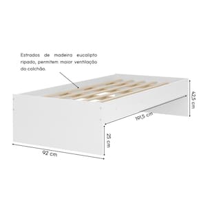 Transforme seu quarto com a elegância e resistência da Cama Prisma Solteiro na cor branca. Esta cama foi projetada para combinar facilmente com qualquer decoração, trazendo um toque de sofisticação ao seu ambiente. Características Principais: Design Versátil: Cama em linhas retas, pode ser utilizado no lado direito ou esquerdo. Durabilidade: Utilizamos parafuso estrutural para dar mais resistência e durabilidade. Estrado da Madeira Ripado: Permite a ventilação do colchão. Imagens meramente ilustrativas, decoração e colchão não acompanha o móvel. As cores e tonalidades podem variar de acordo com as configurações do seu monitor ou a tela do seu celular A limpeza pode ser feita utilizando um pano levemente umedecido com álcool de limpeza doméstica. Evite utilizar produtos abrasivos.
