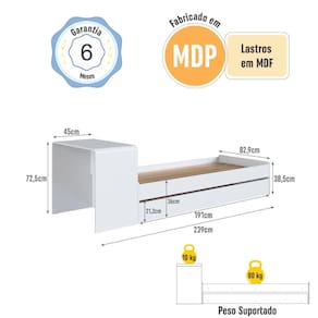 Estrutura em MDPA Cama Infanto Juvenil com Escrivaninha e Cama Auxiliar da Completa Móveis é a solução ideal para deixar o quarto da criança mais charmoso, organizado e funcional. Trata-se de um produto extremamente versátil, acompanhado de uma escrivaninha que oferece um espaço perfeito para estudos e atividades, podendo inclusive ser montada separadamente quando necessário. Para ainda mais praticidade, o conjunto inclui uma cama auxiliar equipada com rodízios que facilitam a movimentação e o uso no dia a dia. O móvel é entregue desmontado, com montagem simples conforme instruções. Suas medidas são 239 cm de largura, 82,9 cm de comprimento e 72,5 cm de altura, suportando até 80 kg em cada cama, oferecendo segurança, conforto e qualidade para o ambiente infantil ou juvenil.