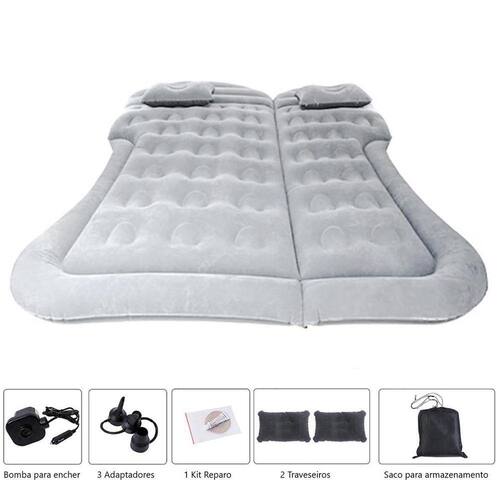 Cama Inflável Colchão Carro Camionete Veicular Viagem Cinza Cor: Cinza Colchão inflável Veicular Premium Colchão ideal para SUV, Caminhonetes, Caminhões e Ônibus. Porém pode ser utilizado em carros de passeio. Com esse colchão você consegue dormir de uma maneira muito confortável em seu carro.Item essencial para você que gosta de fazer longas viagens ou até mesmo acampar. Acessório prático e versátil , possui um tamanho bem reduzido quando está vazio. Conteúdo da Embalagem:- 1 Colchão de ar inflável veicular- 2 Apoio do colchão- 2 Travesseiros infláveis- 1 Bomba de ar elétrica- 1 Folha de reparos- 1 Bisnaga de cola Especificações técnicas:- Material: PVC, ABS, borracha e tecido flocado resistente e durável ;- Cor: Cinza;- Medida dobrado : 25 x 25 x 15 cm;- Medida mínima : 145cm x 43cm x 8cm;- Medida máxima : 180cm x 135cm x 10cm;- espessura do colchão: 10 cm- Peso: 1 kg.- Carga máxima: 360kg. Características:- Produto importado.- Produto com instalação simples. OBS: Esvazia em apenas 2 minutos pode variar de acordo com a pressão colocada . Marca: Veon Importados