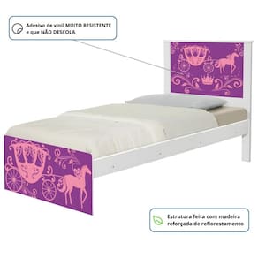 Cama Solteiro Juvenil Barcelona Adesivada Carruagem Princesa com Colchão