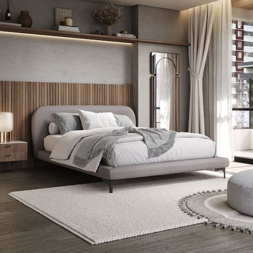 Cama Estofada king com Cabeceira Estilo Moderna Cor Cinza;