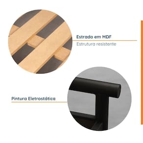 Nada como uma boa noite de sono para melhorar a vida de qualquer um, não é mesmo? Após um dia bem longo, é tão bom deitar na nossa cama. Por isso é tão essencial investir no nosso quarto, deixa-lo um pouquinho mais relax, confortável, aconchegante. A Cama Begônia é um modelo estruturado em aço, estrado em MDF e pintura Cobre. Ela também é perfeita para um visual mais clean e chique. Fácil de combinar com armários, cômodas e também temos a Mesa de Cabeceira da mesma linha. Suas medidas são: 100cm Altura x 213cm Largura x 210cm Profundidade. Depois nos conte como foi a experiência de compra e como ficou seu ambiente nos comentários. Acabamento dos Pés: Pintura Acompanha Cama Auxiliar: Não Acompanha Colchão: Não Altura do Estrado até o Chão: 31 Altura dos Pés: 30 Ambiente Principal: Quarto Complexidade da Montagem: Média: pode ser montado por mais de uma pessoa e/ou necessite de maior conhecimento para montagem Cor: Cinza grafite Cor do Produto: Cinza Grafite Escala de Brilho: Fosco Extensível: Não Informações Complementares: Pés centrais 31cm, pés peseira 48cm, pés cabeceira 100cm. Pés centrais não tocam o chão. Itens Inclusos: 1 Cama, Manual de Montagem e Kit Ferragens Linha ou Coleção: Begônia Manual de Montagem e Instalação: https://product-hub-prd.madeiramadeira.com.br/861442/documents/f32b435c-6196-46dd-9250-70651a1601261428029begOniakingr1.pdf Material do Estrado: MDF Material dos Pés: Aço Material Principal: Aço Necessita Montagem: Sim Origem do Produto: Nacional Permite a Utilização de Cama Auxiliar: Não Peso: 66 Possui Baú: Não Possui Gavetas: Não Possui Grade: Não Possui Pés: 09 Possui Portas: Não Possui Prateleiras: Não Possui Rodízio: Não Recomendações de Uso, Manutenção e Limpeza: Limpeza Use um pano macio, levemente umedecido com água. É possível o uso detergente neutro, ou sabão neutro com água. Manutenção Para garantir estabilidade e durabilidade, é recomendado reapertar os parafusos de tempos em tempos. Ventilação A falta de ventilação e excesso de calor pode prejudicar a durabilidade e acabamento do produto. Sapatas Niveladoras: Não Sistema de Montagem: Parafusos, porcas e chaves Tamanho da Cama: King Tamanho do Colchão Indicado (L x C): 193x203 Tipo de Cama: Convencional Tipo de Colchão: King Tipo de Estrado: Fixo
