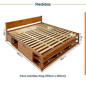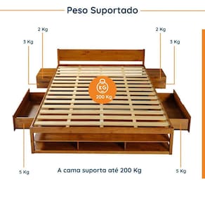 A Cama Irara além de possuir um design moderno, conta com vários compartimentos, como gavetas, prateleiras e Mesas de Cabeceira, os quais proporcionam um espaço a mais para que você possa guardar roupas de cama, objetos de decoração, ou o que desejar. Perfeita para dar aquele toque especial na organização do ambiente, otimizando espaço. Produzida em madeira maciça de pinus e acabamento em pintura UV Branco Lavado. Pintura que deixa em evidência os veios e nós da madeira de pinus, detalhe que proporciona delicadeza e elegância ao móvel. Acabamento da Gaveta: Pintura Acabamento da Prateleira: Pintura Acompanha Cama Auxiliar: Não Acompanha Colchão: Não Altura do Estrado até o Chão: 40 cm Ambiente Principal: Quarto Complexidade da Montagem: Alta: deve ser montado por um montador especializado Cor: Caramelo Cor do Produto: Caramelo Escala de Brilho: Fosco Escala de Brilho da Gaveta: Fosco Escala de Brilho da Prateleira: Fosco Extensível: Não Gaveta com Chave: Não Informações Complementares: Gaveta superior da mesa de cabeceira suporta até 2kg. Gaveta inferior da mesa de cabeceira suporta até 3kg Itens Inclusos: 1 Cama King , 2 Mesas de Cabeceira, 1 Kit de Ferragens e 1 Manual de Montagem Linha ou Coleção: Irara Manual de Montagem e Instalação: https://product-hub-prd.madeiramadeira.com.br/871656/documents/be210dab-8f1e-4efb-9ca9-b004bd1e50b3aldemontagemcamairaraqueen.pdf Material da Gaveta: Madeira Maciça Material da Prateleira: Madeira Maciça Material do Estrado: Madeira Maciça Material Principal: Madeira Maciça Necessita Montagem: Sim Origem do Produto: Nacional Permite a Utilização de Cama Auxiliar: Não Peso: 94,1 kg Peso Máximo por Gaveta: 5 kg Peso Máximo por Prateleira: 5 kg Possui Baú: Não Possui Gavetas: Sim Possui Pés: Não Possui Portas: Não Possui Prateleiras: Sim Possui Rodízio: Não Quantidade de Gavetas: 03 Gavetas Quantidade de Prateleiras: 01 Prateleira Recomendações de Uso, Manutenção e Limpeza: Pano seco Sistema de Montagem: Parafusos e Cavilhas Tamanho do Colchão Indicado (L x C): 193cm x 203cm Tipo de Cama: Convencional Tipo de Colchão: King Tipo de Corrediça da Gaveta: Metálica Simples Tipo de Estrado: Fixo Tipo de Madeira Maciça: Pinus Tipo de Madeira Maciça da Gaveta: Pinus Tipo de Madeira Maciça da Prateleira: Pinus Tipo de Puxador da Gaveta: Embutido Ean: 7909903442753