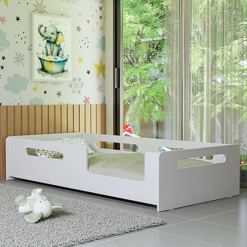 Descrição A Cama Montessori combina conforto e sofisticação. Seu design foi pensado para acompanhar o desenvolvimento infantil, incentivando a independência e o crescimento da criança, com foco em funcionalidade, segurança e autonomia no dia a dia. Fabricada 100% em MDF de alta qualidade, proporciona resistência e longa durabilidade. As grades laterais funcionam como proteção adicional, oferecendo segurança e tranquilidade na hora do descanso. Seu formato permite uma boa visibilidade, possibilitando que o ambiente ao redor seja facilmente observado. É a escolha ideal para quem busca custo-benefício e estilo na decoração do quarto infantil.