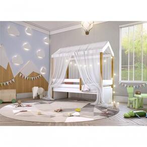 Cama Montessori Cabana Com Cordão Led E Dossel Branco Cama Montessoriana Exclusiv Fio de Luz e Voal Branco