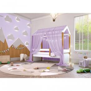 Cama acompanha grade lateral de proteção, voal, e colchão de solteiro na medida de 14x88x188 cm, e cordão fio de luz LED com 10 bolinhas. (não acompanha pilhas).