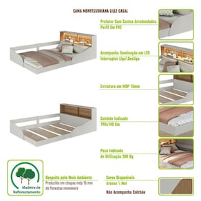 O(a) Cama Montessoriana Casal Lille com Led Arenas - Art In Móveis é produzido em MDP na escala de brilho Fosco, e possui um grau de dificuldade de montagem: Médio.