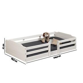 A Casatema é uma loja especializada em Móveis infantis no conceito lúdico, onde a diversão e segurança fazem parte do design de cada peça. Todo o processo de construção de nossos móveis é baseado nas experiências de nossas crianças, o que torna nossos produtos inovadores no mercado! Produto desenvolvido 100% em madeira maciça de pinus, o que o torna robusto e durável. Seu acabamento de superfície passa por uma usinagem, trazendo um leve toque rústico. Sua pintura é feita em Laca fechada, que garante uma excelente cobertura. Acompanha Cama Auxiliar: Não Acompanha Colchão: Não Acompanha Dossel: Não Acompanha Móbile: Não Acompanha Suporte para Mosquiteiro: Não Ambiente Principal: Quarto Infantil Complexidade da Montagem: Baixa: pode ser montado por uma pessoa sozinha Cor: Branco Cor do Produto: Branco Cor Flex: não Escala de Brilho: Semi-Brilho Itens Inclusos: 1 Cama, Kit Ferragens e Manual de Montagem Linha ou Coleção: Malta Manual de Montagem e Instalação: https://cdn2.madeiramadeira.com.br/atributo/moveis-caftor/1216231-7908308731875.pdf Material do Estrado: Madeira Material Principal: Madeira Maciça Montagem Flex: não Necessita Montagem: Sim Origem do Produto: Nacional Permite a Utilização de Cama Auxiliar: Não Peso: 26 Possui Baú: Não Possui Gavetas: Não Possui Pés: Não Possui Portas: Não Possui Prateleiras: Não Recomendações de Uso, Manutenção e Limpeza: Na limpeza não utilizar produtos químicos e abrasivos, usar apenas um pano umedecido, para garantir a maior durabilidade do móvel Sistema de Montagem: Parafusos e Cavilhas Suporta Até (kg): 80 Tamanho do Colchão Indicado (L x C): 88x188 Tipo de Cama: Infantil Tipo de Colchão: Solteiro Tipo de Estrado: Fixo Tipo de Madeira Maciça: Pinus