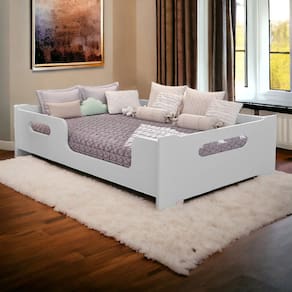 Apresentando a Cama Montessoriana Encanto! Com um design encantador e seguro, esta cama oferece o espaço perfeito para o desenvolvimento e a criatividade das crianças. Incentive sua autonomia e garanta noites tranquilas em um mundo de encantamento e aprendizado. Prepare-se para ver o sorriso iluminar o rosto do seu pequeno(a) a cada noite neste universo dos sonhos! Dimensões do Produto Montado: Altura: 45 cm Largura: 143 cm Profundidade: 193 cm Detalhes: - Ideal para: colchão de 138x188 cm (colchão não incluso) - Produto em MDF/MDP - Produto para quem procura qualidade e conforto usando pouco espaço. Informações adicionais: - Verifique o tamanho e os detalhes do produto antes de realizar a compra. - As fotos são meramente ilustrativas. Objetos decorativos que aparecem nas imagens não acompanham o produto. - A transportadora entregará o produto no portão e/ou portaria da residência, ou ainda, somente no andar térreo, em caso de prédios, do endereço de entrega. - Avaliar a mercadoria no ato do recebimento e recusar em caso de divergência ou danos.