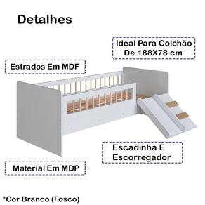 Cama Montessoriana Escada E Escorrega Aft010 Branco Comm Branco