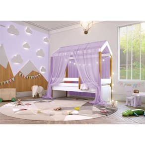 Cama acompanha grade lateral de proteção, voal, e cordão fio de luz LED com 10 bolinhas. (não acompanha pilhas).
