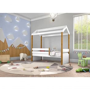 Cama acompanha grade lateral de proteção, colchão de solteiro na medida de 88x188 cm.