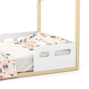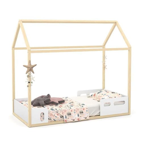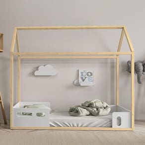 ESPECIFICAÇÕES: Estrutura em madeira Pintura atóxica 2 Grades laterais em MDF Cantos arredondados Estrado em MDF Formato de casinha Ideal para colchão 188x88 cm Não acompanha colchão
