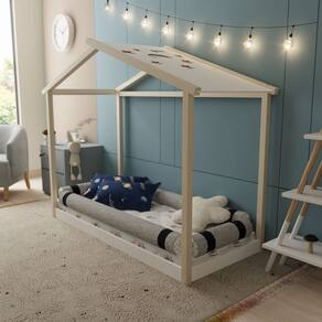 Construída em madeira de alta qualidade, a cama possui bordas arredondadas e uma estrutura baixa, permitindo que as crianças subam e desçam com facilidade, promovendo a autonomia e a segurança. Decorado com almofadas, criando um cantinho aconchegante para leitura ou brincadeiras.