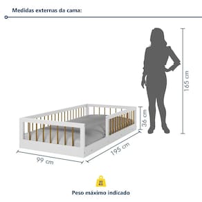 A cama é resistente e suporta o peso recomendado para crianças na fase de transição do berço para a cama.