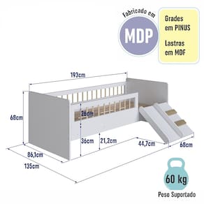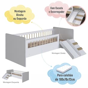 Cama Montessoriana Solteiro com Escada e Escorrega AFT010 Linha Affetto Branco Completa Móveis