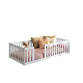 A Cama Montessoriana Solteiro Giulia com Grade Casatema é perfeita para garantir mais autonomia aos pequenos. Estrutura em madeira maciça e clean, ou seja, madeira selecionada, com pequeno índice ou isenta de nós, realçando a beleza marroml da madeira. Sistema de pintura predominante em poliéster, dando um toque de proteção e acabamento no produto, além disso, deve-se considerar que este sistema de pintura é atóxico. Conta com uma grade alta em todo seu redor, atendendo as normas internacionais de segurança. Seu projeto em estilo montessoriano, estimula a independência da criança, deixando-a descobrir por si só os primeiros passos e obstáculos, de forma segura. Uma peça ideal para trazer a diversão e segurança para os dias e noites das crianças.