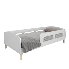 Cama Montessoriana Solteiro Jardim com Proteção Movelbras Branco. Cama Jardim com proteção lateral Com a cama Jardim, a criança desenvolve liberdade, autonomia e independência. Possui acabamento em perfil PVC soft nas proteções laterais, cabeceira e peseira, proporcionando maior conforto ao toque. Possui uma proteção lateral maior medindo: 189,6x25cm e uma proteção menor medindo 127,8x25cm proporcionado maior segurança para a criança. Tamanho indicado de colchão: 188x88x14cm. Suporta até 120 KG A cama acompanha pés fabricados em madeira (utilização na sua forma natural, possíveis marcas podem ser características intrínsecas da madeira) Ean: 7909903226193