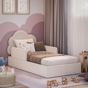 Cama Montessoriana Solteiro Nuvem C/ Colchão e Apoio Lateral - Bege