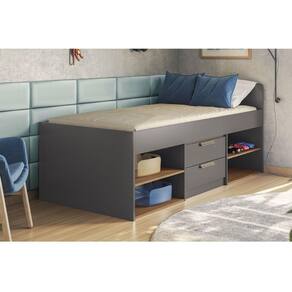 Cama Solteiro Multifuncional New Conect c/ 2 Gavetas Grafite/Jatobá - Santos Andirá Marca: Santos Andirá