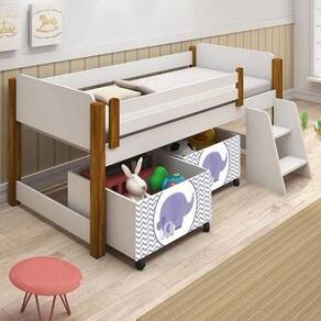 Cama Naty Branco/Mel com 2 nichos e escadinha