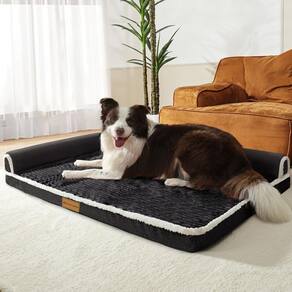 - Sofá-cama para cães em forma de L: o design em forma de L com bordas de espuma oferece suporte extra para a cabeça e o pescoço do animal de estimação; dois lados planos oferecem muito espaço para os animais de estimação se esticarem; aumenta o conforto do aconchego e da escavação