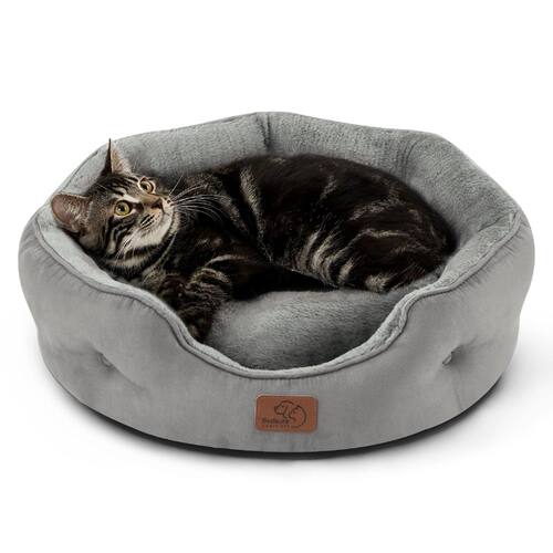 Bedsure Cama pequena para cães pequenos lavável – camas redondas para gatos internos, cama redonda para animais de estimação para filhotes e gatinhos com fundo antiderrapante, cinza, 50 cm - Extra macio: satisfaça seu animal de estimação com conforto luxuoso com a superfície de sherpa de pelúcia, proporcionando suavidade fofa e ultraaconchegante. Cria um ambiente de descanso aconchegante para o seu amado companheiro relaxar e experimentar o melhor relaxamento. - Conforto melhorado: o design de reforço redondo promove o máximo conforto e segurança, oferecendo ao seu animal de estimação uma variedade de posições aconchegantes para se aconchegar. A forma acolchoada é profundamente preenchida para apoiar a cabeça e o pescoço do seu animal de estimação para um sono mais reparador. - Enchimento premium: com um enchimento de fibra de poliéster ultramacio, esta cama para cães oferece alívio das articulações e dos músculos. E pode manter sua forma e loft mesmo após uso prolongado, garantindo uma experiência consistentemente confortável para o seu amigo peludo. - Seguro para animais de estimação: esta cama padrão 100 certificada para cães e gatos cria um espaço seguro e confortável para o seu animal de estimação relaxar e rejuvenescer. A parte inferior antiderrapante adiciona estabilidade, evitando escorregões e protegendo seu animal de estimação. - Fácil de cuidar: com sua almofada removível, esta cama de cachorro é fácil de manter. Basta lavar à máquina inteiramente em água fria e em um ciclo suave para uma restauração como nova.