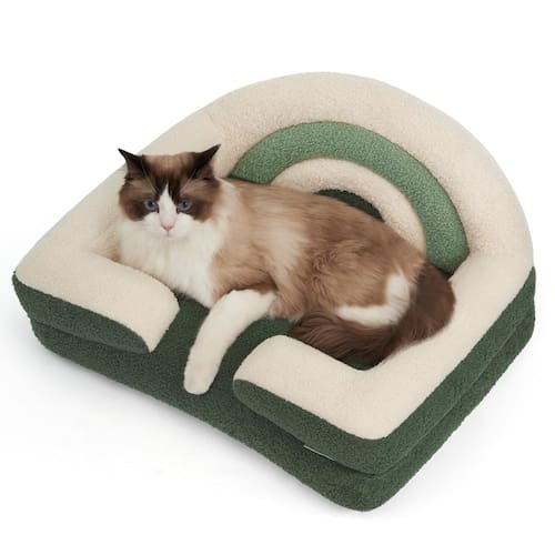 - Animais de estimação menores, mais segurança: com espuma macia picada e lã de pelúcia, o sofá para gatos envolve seu amigo peludo com conforto e segurança. Oferece suporte suave para músculos e articulações, para que eles fiquem tranquilos e acordem se sentindo bem