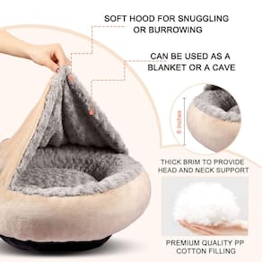 - ?Escolha o tamanho: GASUR cama coberta 2 em 1 para animais de estimação vem com um capuz anexado em forma de rosquinha. Sugerimos a cama pequena (58 x 58 cm) para cães e gatos de até 9 kg e a cama média (66 x 66 cm) para animais de estimação de até 13,6 kg.