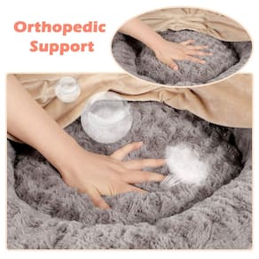 Aro elevado e forma redonda: os travesseiros de pelúcia da cama donut para cães fornecem suporte acolchoado e alívio da dor para o seu animal de estimação, o que a torna uma das camas de cachorro mais confortáveis para cães pequenos e idosos.