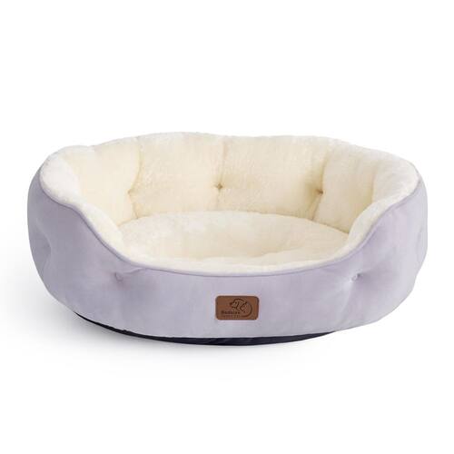 Bedsure Camas para cães pequenos – Camas redondas para gatos de interior, cama de cachorro pequena lavável para filhotes e gatinhos com fundo antiderrapante, lilás enevoado, 50 cm - Extra macio: satisfaça seu animal de estimação com conforto luxuoso com a superfície de sherpa de pelúcia, proporcionando suavidade fofa e ultraaconchegante. Cria um ambiente de descanso aconchegante para o seu amado companheiro relaxar e experimentar o melhor relaxamento. - Conforto melhorado: o design de reforço redondo promove o máximo conforto e segurança, oferecendo ao seu animal de estimação uma variedade de posições aconchegantes para se aconchegar. A forma acolchoada é profundamente preenchida para apoiar a cabeça e o pescoço do seu animal de estimação para um sono mais reparador. - Enchimento premium: com um enchimento de fibra de poliéster ultramacio, esta cama para cães oferece alívio das articulações e dos músculos. E pode manter sua forma e loft mesmo após uso prolongado, garantindo uma experiência consistentemente confortável para o seu amigo peludo. - Seguro para animais de estimação: esta cama padrão 100 certificada para cães e gatos cria um espaço seguro e confortável para o seu animal de estimação relaxar e rejuvenescer. A parte inferior antiderrapante adiciona estabilidade, evitando escorregões e protegendo seu animal de estimação. - Fácil de cuidar: com sua almofada removível, esta cama de cachorro é fácil de manter. Basta lavar à máquina inteiramente em água fria e em um ciclo suave para uma restauração como nova.