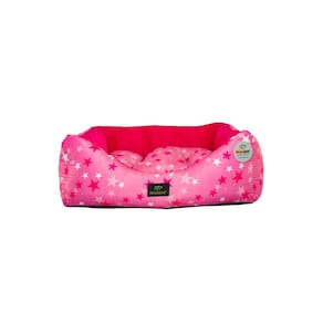 Cama para Cachorro Quadrada em Poliéster Estrela Rosa Média (M) 45 x 45 cm