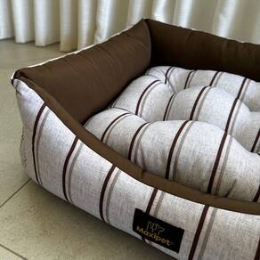 Cama para Cachorro Quadrada em Poliéster Listrada Marrom e Cinza Grande (GG) 50 x 50 cm - Informações