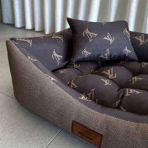 A cachorrinha nas fotos é uma Yorkshire de 5 kg e a caminha é a tamanho M.