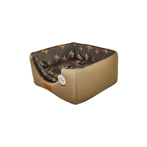 Cama para Cachorro Toca Quadrada em Corino + Poliéster Marrom Claro LV Grande (G) 50 x 50 x 50 cm