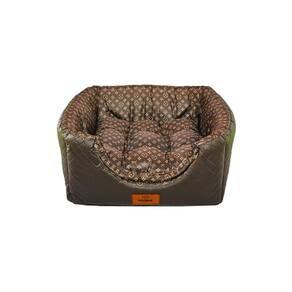 Cama para Cachorro Toca Quadrada em Corino + Poliéster Marrom Escuro LV Grande (GG) 55 x 55 x 55 cm