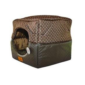 Cama para Cachorro Toca Quadrada em Corino + Poliéster Marrom Escuro LV Grande (GG) 55 x 55 x 55 cm - InformaçõesTamanho: GG - 55 x 55 x 55 cm.