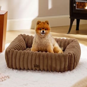 Bedsure Camas para cães de veludo cotelê, marrom, 25 x 21 x 7 - Laterais elevadas de suporte: as laterais elevadas fornecem um recanto aconchegante para a cabeça e o pescoço do seu animal de estimação, promovendo um sono tranquilo. A mistura 2:1 de espuma picada e fibra de poliéster oferece suporte perfeito e conforto para animais de estimação de todos os tamanhos. - Pele ultraaconchegante: feita com imitação de pele de coelho, esta cama é incrivelmente quente e macia, perfeita para o outono e inverno. Seu animal de estimação vai adorar se aconchegar neste lugar de pelúcia e aconchegante. - Seguro e protegido: a parte inferior antiderrapante garante que a cama do seu animal de estimação permaneça no lugar, oferecendo segurança e estabilidade extra para o seu amigo peludo. - Capa fácil de limpar: a capa removível e lavável facilita a manutenção da limpeza. Basta lavar e secar na máquina para manter a cama fresca e limpa. - Tamanhos para todos os animais de estimação: disponível em quatro tamanhos (P-GG) para acomodar todas as raças de cães e gatos, garantindo que cada animal de estimação encontre seu ajuste perfeito.