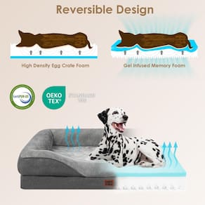 Nossa cama ortopédica para cães apresenta um design reversível com espuma viscoelástica e espuma para caixas de ovos, proporcionando distribuição de peso e suavidade para o conforto do seu animal de estimação. O design do sofá-cama para cães inclui almofadas de 4 lados para maior apoio no pescoço e na cabeça, garantindo um sono reparador. Com uma camada impermeável interna e pontos antiderrapantes na parte inferior, esta cama para animais de estimação oferece praticidade. Coberto com flanela macia, garante conforto extremo e vem em vários tamanhos para todos os cães. Nossa cama lavável para cães tem uma capa removível, que você pode tirar facilmente para lavar. Lembre-se de deixá-lo expandir por 48 horas para obter a forma e a espessura ideais. Ofereça ao seu amigo peludo o máximo conforto com o sofá para cães EHEYCIGA!