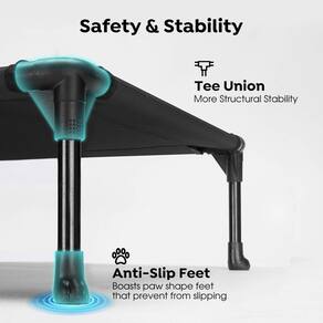 - Estabilidade: a estrutura do conector de três vias e os pés antiderrapantes garantem suporte robusto e estável, mantendo a cama elevada para cães firmemente no lugar e evitando oscilação ou inclinação durante o uso