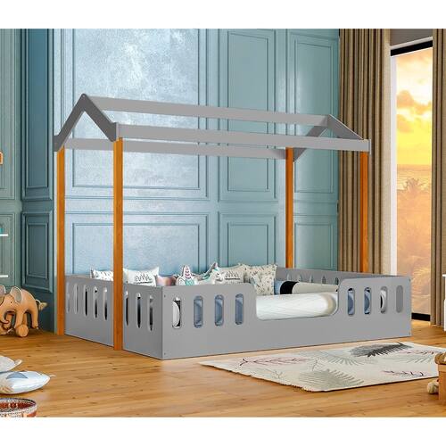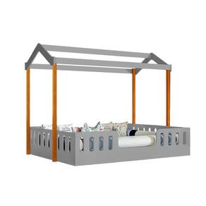 Cama Para Criança Ágatha Casal Infantil Casinha Segura Montessoriana Cinza/Castanho Claro