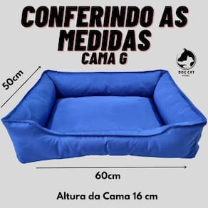 01 cama pet retangular tamanho: g Medidas: comprimento 60 cm x largura 50 cm x altura 16 cm medidas externas