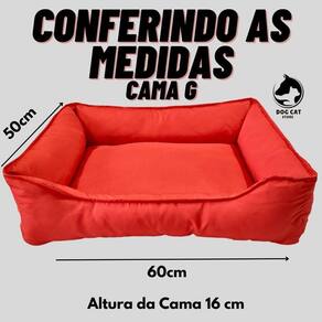 01 cama pet retangular tamanho: g Medidas: comprimento 60 cm x largura 50 cm x altura 16 cm medidas externas