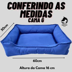 01 cama pet retangular tamanho: g Medidas: comprimento 60 cm x largura 50 cm x altura 16 cm medidas externas