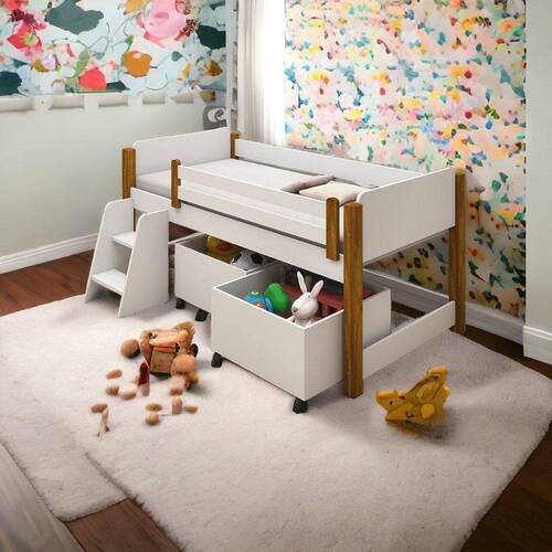 Transforme o quarto do seu filho em um espaço divertido e funcional com essa incrível cama! Além de proporcionar uma noite de sono tranquila, ela também possui dois nichos espaçosos para armazenar brinquedos, livros e objetos pessoais, mantendo tudo organizado.
