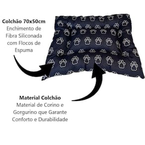 O produto é feito com tecido de gorgurinho, enchimentos de fibras siliconada com flocos de espuma que abraçam seu pet e servem de travesseiro, leve, macio e fácil de transportar, podendo ser dobrado ou até mesmo enrolado.