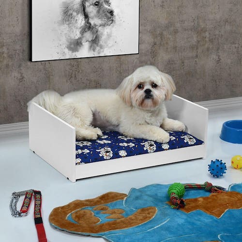 CAMA PET CONFORT MACIA BORDAS ELEVADAS – BRANCO / AZUL