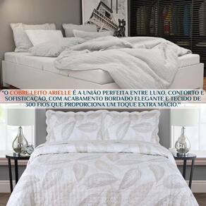 Transforme seu quarto em um verdadeiro refúgio de luxo O Cobre Leito King Arielle é a escolha perfeita para quem valoriza sofisticação, conforto extremo e acabamento impecável. Com tecido em 100% algodão 300 fios e bordado premium, ele entrega tudo o que seu quarto precisa para ficar digno de capa de revista.