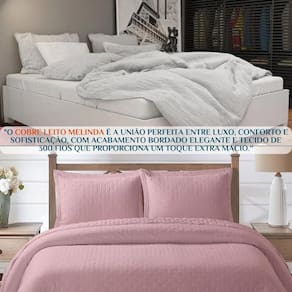 O Cobre Leito King Melinda 300 Fios é a união perfeita entre luxo, conforto e sofisticação. Feito em algodão puro, com 300 fios percal e bordado elegante, oferece um toque sedoso, frescor para as noites de sono e visual deslumbrante para seu quarto.